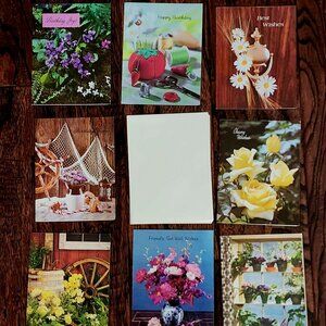 Vintage Retro Floral Sewing Fishing Assorted Greeting Cards x 8 w Envelopes