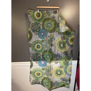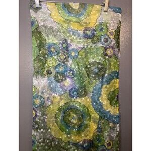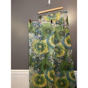 Retro Floral Sheer Curtain Panels Set of 2 Green Blue Yellow Circles 53x36 Vintage Decor