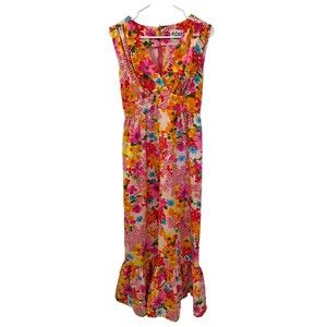 Vintage Retro Flower Power Sun Fashions of Hawaii Floral Maxi Dress Size 10 MINT