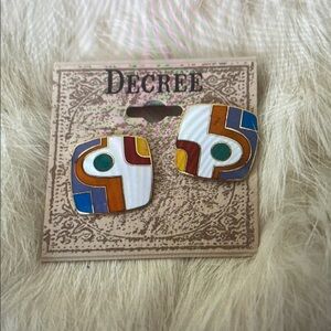 Vintage, Retro Geometric Enamel Pierced Earrings