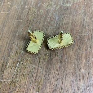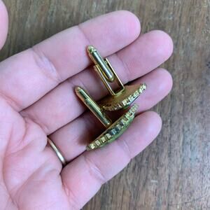 Vintage Retro Gold Tone Green Vomit Resin Filigree Detail Cufflinks Cuff Links