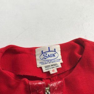 Vintage Retro Gothic Women Sleeveless Leather Lines Top Zip SAUN Wool Size 16🔥
