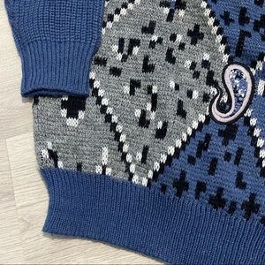 Vintage Retro Grandpacore Argyle Pattern Chunky Knit Wool Blend Sweater M