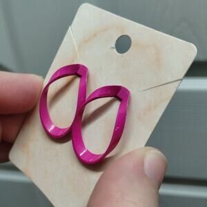 Vintage Retro Hot Pink Geometric Oval Tear Drop Shaped Pierced Ear Earrings