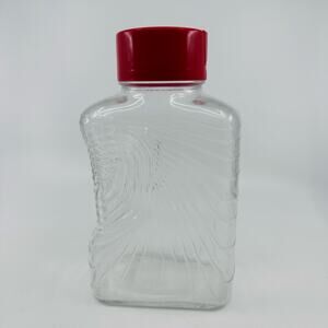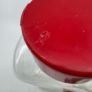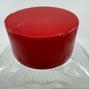 Vintage retro Italian Covetro patterned glass jug pitcher with a red lid. This eye-catching serveware piece features a distinctive Covetro pattern, adding a touch of vintage charm to your table setting. The red lid complements the design while ensuring the contents stay secure. Perfect for serving beverages in style.
