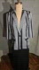 Super Groovy Polyester jacket with psychedelic black and white stripes, 3/4 sleeves, shoulder pads, fake front pockets, and a one button front. Simplicity in design but not in fabric. Wild, but not "zebra-esque"
