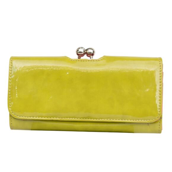 Vintage Retro Lime Green Pink Wallet Accordion Style Kiss lock Clasp