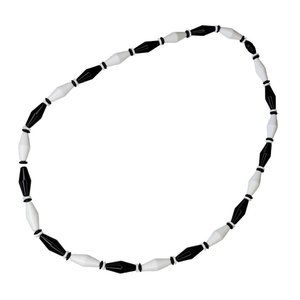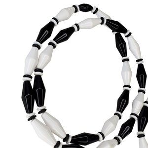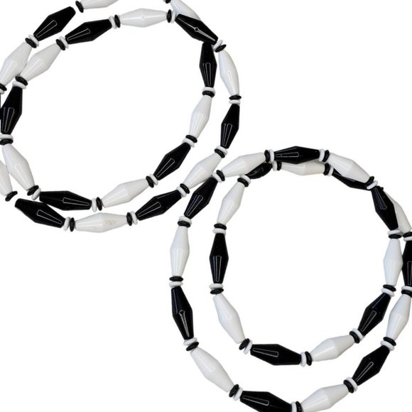 Vintage Retro Long Geometric Black White Beaded Necklaces Set Of 2 28"