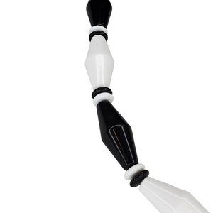 Enhance your vintage jewelry collection with this set of two long beaded necklaces. The black and white geometric design of these necklaces gives them a retro look that will complement any outfit. Measuring 28 inches in length, these necklaces feature a barrel closure and are made of high-quality plastic material.