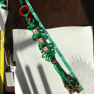 Vintage Retro Macrame JOY Christmas wall-hanging decor, green, appr. 27"
