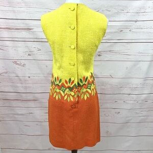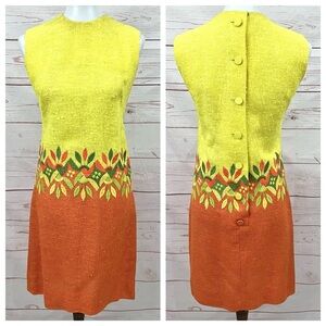 Vintage Retro Mid Century MCM Mod Embroidered Flower Shift Dress