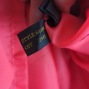 1/2 zip and eye hook closure on back. Structured shoulders.