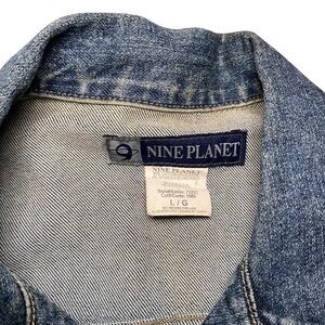 Vintage Retro Nine Planet 90s Blue Jean Button Front Jacket Large