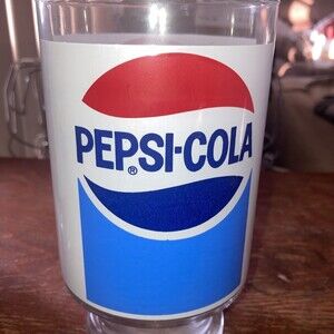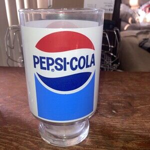 Vintage Retro Pepsi Cola Large Pedestal 32oz Drinking Tumbler Glass Set Of 2.