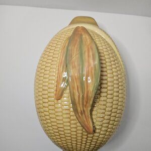 A vintage retro Pfaltzgraff lidded corn shaped casserole dish. Very Kitschy looking like something from Grandma's kitchen. Detailing is superb. It really looks like a large ear of corn. This piece would really be the centerpiece on a Thanksgiving dinner table. It is quite large. It measures 12 inches across 6 inches wide and approximately 8 inches high. Upon very close examination, there are no chips, no crazing, no cracks or breaks or repairs. The only flaw is one spec where the artist missed a speck of green paint on the edge. See my picks of the lid handle. Very tiny and hard to find. Otherwise, mint vintage condition. Non-smoking pet-free home. @ ER NW Box