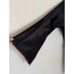 Vintage Beaded Silk Kimono Poncho Top Boho Witchy Festival Blouse One Size