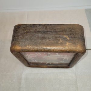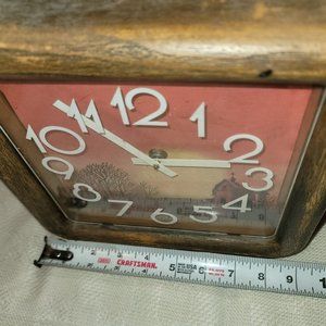 Vintage Retro Spartus Corporation Electric Square Clock Farm Scene Wood 1970s