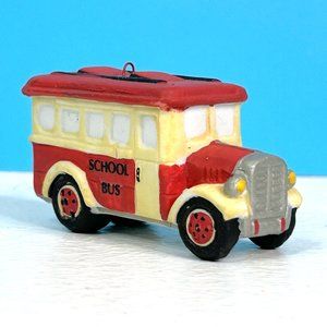 Vintage Retro Style School Bus Porcelain 2.5" Christmas Tree Ornament