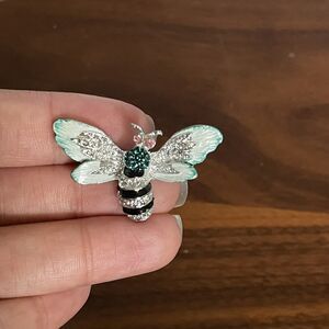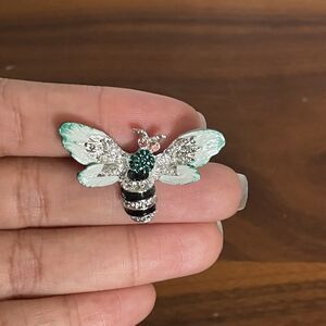 Vintage Retro Teal Enamel Fly Bee Insect Rhinestone Pin Brooch Lot Of 2