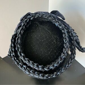 Vintage Retro Toni Leslie Braided Black Ladies Hat with Bow and Face Netting