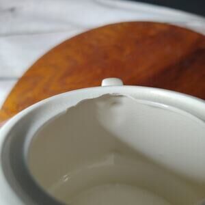 Sugar & creamer - Lots of crazing. The sugar dish has a large chip on the inside rim. The lid hides the chip for the most part. It is sharp and will be shipped with painters tape over the chip for safety.