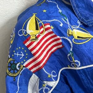 Vintage at it’s best with a nautical theme. Fabric has trophies and a 1776 flag along with anchors and a boat wheel.