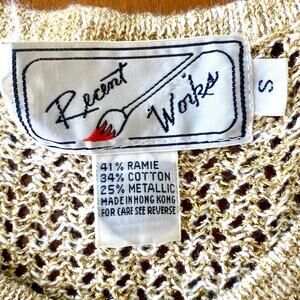 Super hip sweater tank in a fun open weave and metallic fabric by Recent Works. Ramie/cotton/metallic blend - machine wash.