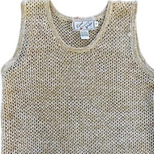 Vintage Retro Women's Gold Metallic Open Weave Sweater Tank - Size Small. In excellent preowned condition.