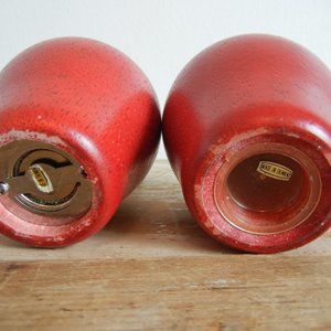 Vintage Retro Wooden Red Apple Salt Shaker and Pepper Grinder Set - Home Decor.