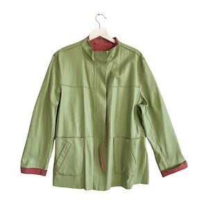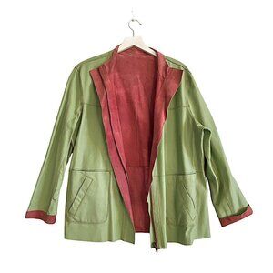 Vintage Retro look Reversible zip front Leather Jacket. Green and pink/red.