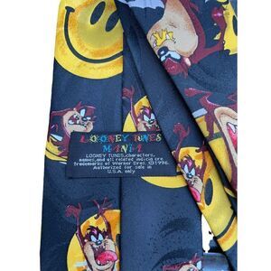 Vintage / Retro 1996 Looney Tunes Mania Taz / Tasmanian Devil And Yellow Smiley Faces Novelty Necktie / Neck Tie