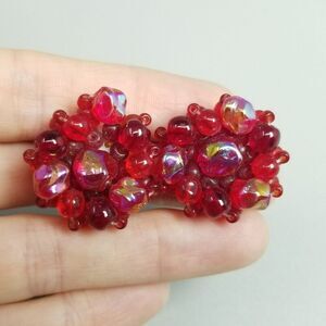 Vintage Retro Red Glass Beaded Cluster Clip On Earrings, Made in West Germany