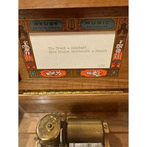 Vintage Reuge Saint Croix music Switzerland The Trout Schubert eine kleine Nachtmusik- Minuet. It works when wound up, minor vintage wear to the wood ( minkr scratches see pictures). Such a. Beautiful piece. Very rare. Smoke free and clean home.