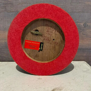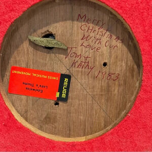 Vintage Reuge Swiss Musical Movement Round Wooden Box Glass Top Red Felt Bottom