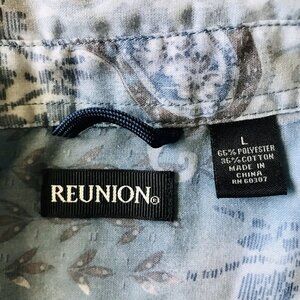 Vintage Reunion Blue Paisley Print Long Sleeve Button Up Shirt Size Large