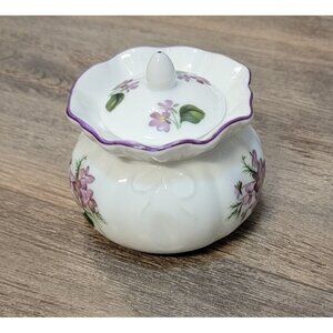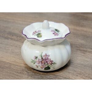 Vintage Reutter Porzellan Porcelain Germany Floral Round Trinket Box & Lid