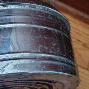 Visible wear, scratches, and patina on the aluminum surface and handle. Bottom to top (excluding handle) = 5.5 inches. Base diameter = 7 inches.