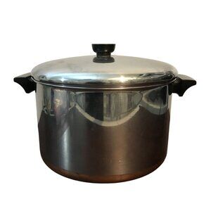 Vintage Revere Ware Stock Pot 8 QT Copper Clad Bottom Handle W/Lid USA