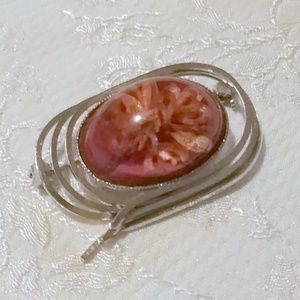 Vintage Reverse Carved Floral Silver Tone Brooch