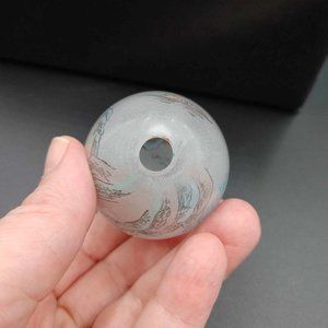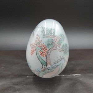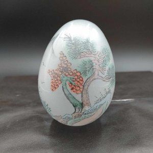 Vintage Reverse Hand Painted Glass Egg Japanese Scene Mountain Tree - No Stand