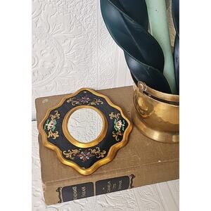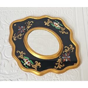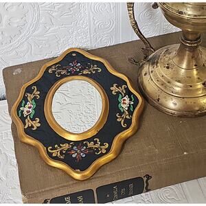 Vintage Reverse Painted Mirror – Black & Gold Floral Frame