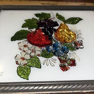 Vintage Reverse Painting On Glass with Foil Art - Fruit Signed J Young Framed