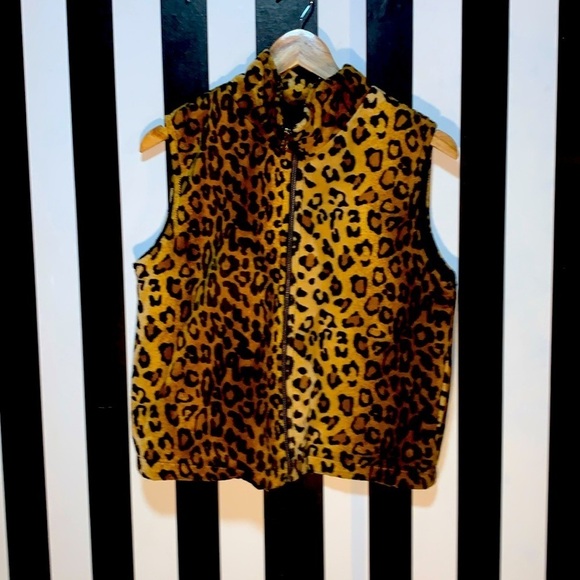 Vintage Reversible Black/Leopard Print Winter Puffy Vest 90s y2k Aesthetic Small