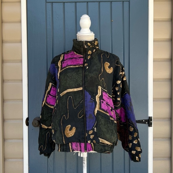 Stand out with this vibrant jacket featuring a unique abstract design. Perfect for adding a pop of color to your wardrobe.