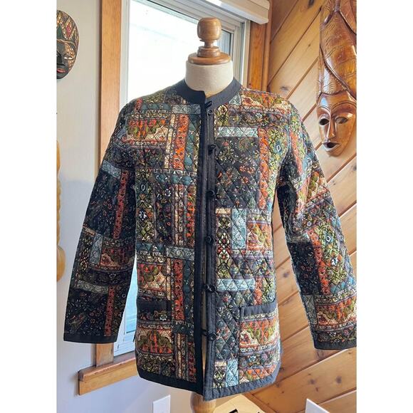 Reversible tapestry style quilted jacket. Size is Small/Medium. Button details. Has pockets. In like new condition. 100% Cotton.