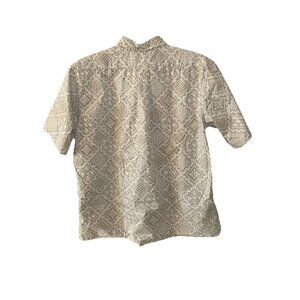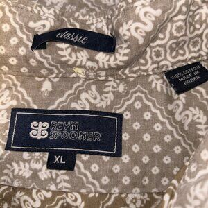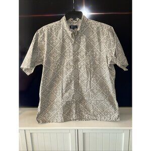 The Vintage Reyn Spooner Classic Aloha Hawaiian Shirt in XL size is a colorful and breathable button-up shirt made from 100% cotton. With a classic fit and short sleeves, this shirt is perfect for all seasons and features a button-down collar and pockets. The Hawaiian theme adds a fun and tropical touch to the shirt, making it ideal for summer, fall, and spring wear. Machine washable and woven in South Korea, this shirt is a stylish and comfortable addition to any man's wardrobe.