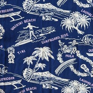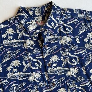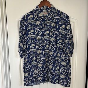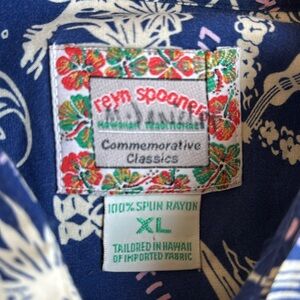 Vintage Reyn Spooner Commemorative Classics Blue Hawaiian Rayon Shirt Mens XL