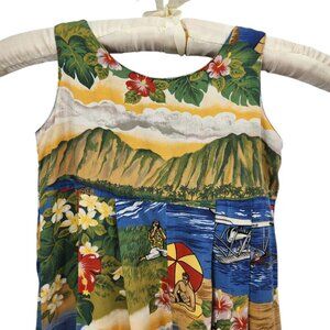 Vintage Reyn Spooner Girls Toddler 3T Dress Hawaiian Tropical Floral Beach Multicolor Rayon