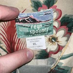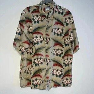 Vintage Reyn Spooner Hawaiian Linen Blend Floral Print S/S Shirt Button Down XL