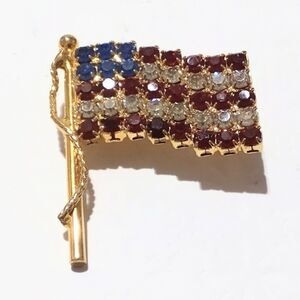 Vintage Rhinestone American Flag Brooch Patriotic Stars and Stripes
